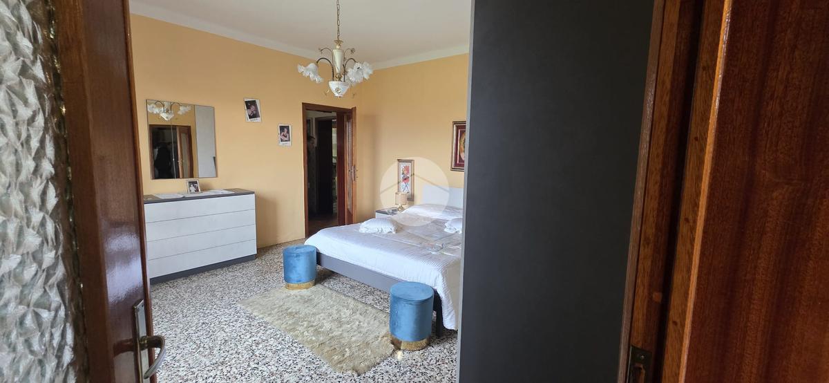 Attualmente presenta due cucine, tre camere matrimoniali e due bagni entrambi finestrati.